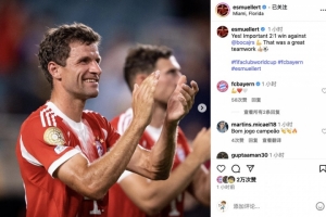 赛后,穆勒更新社媒肯定整个团队的表现,写道:太棒了!对阵博卡青年2:1的胜利至关重要 💪 这是完美的团队协作 ⚽️👍🏼