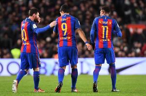 苏亚雷斯:我站在梅西和内马尔中间像头驴,只想着别碍着他们就好
